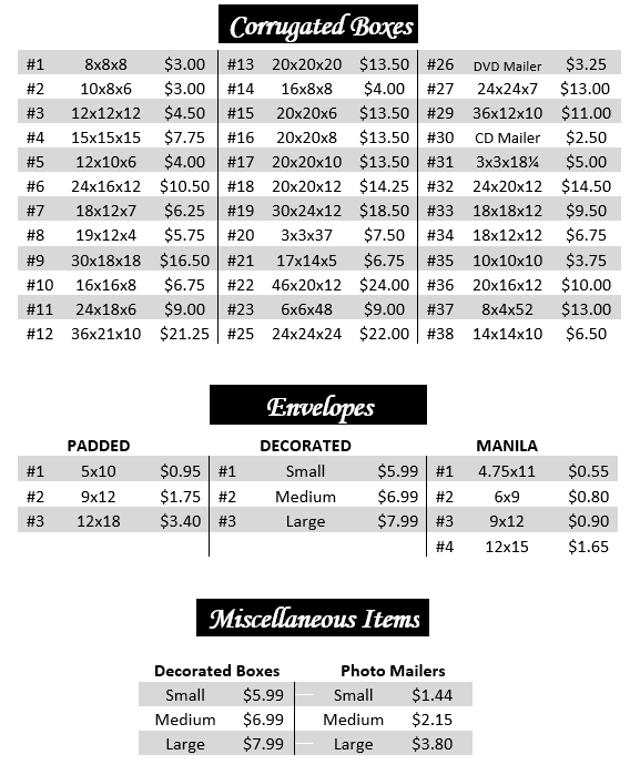 Do you know what “Dimensional Weight” is? It’s a rule the shipping companies use to charge you for the size of your package—and not just the weight. If you don’t use the correct box size, you may be paying (a lot) more than you need to. Pony Mailing & Business Center has a box to fit almost anything — we’ll make sure you get the right one!